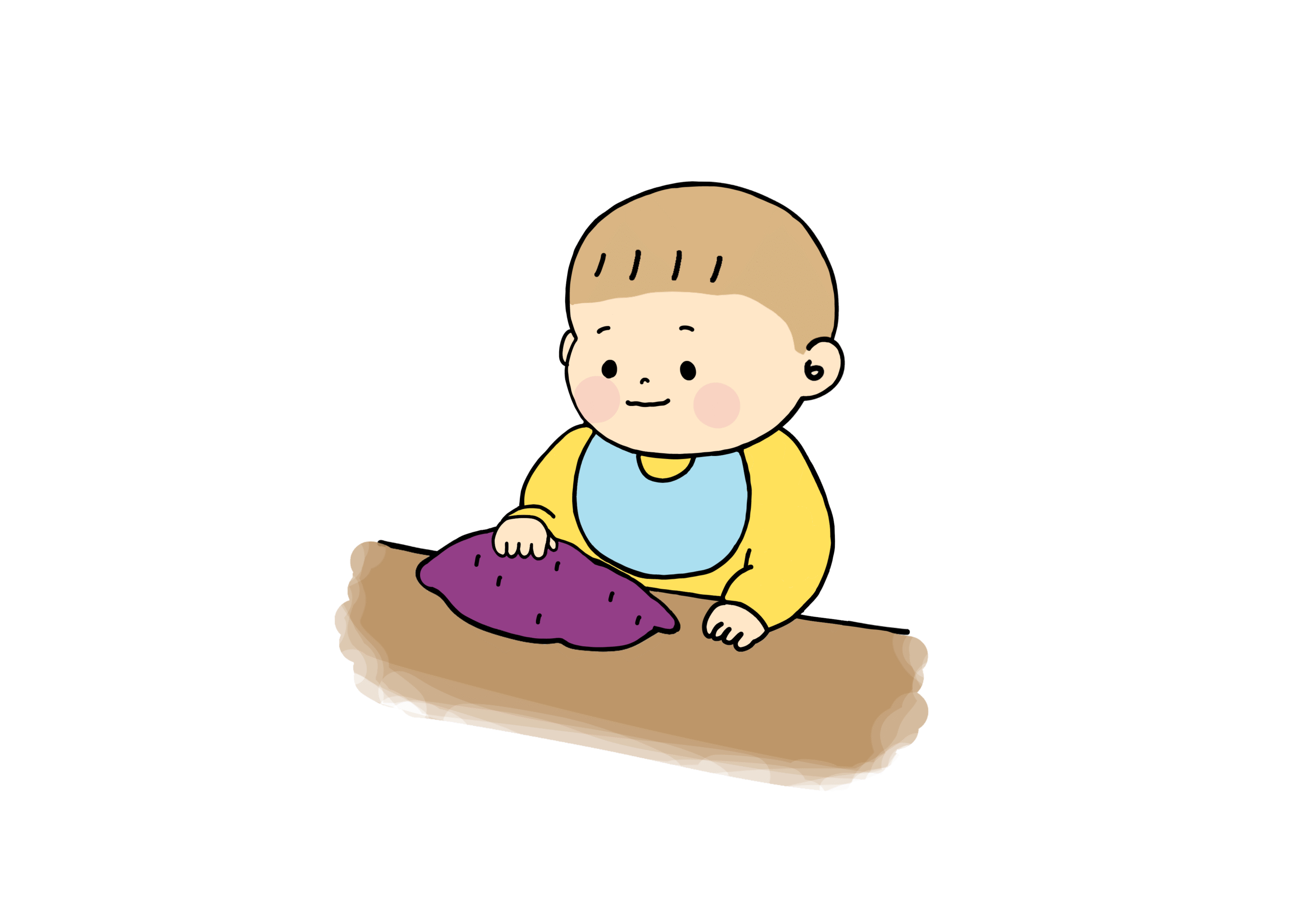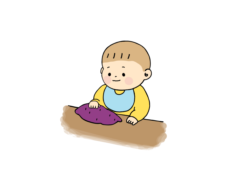 さつまいもを触る乳児さん